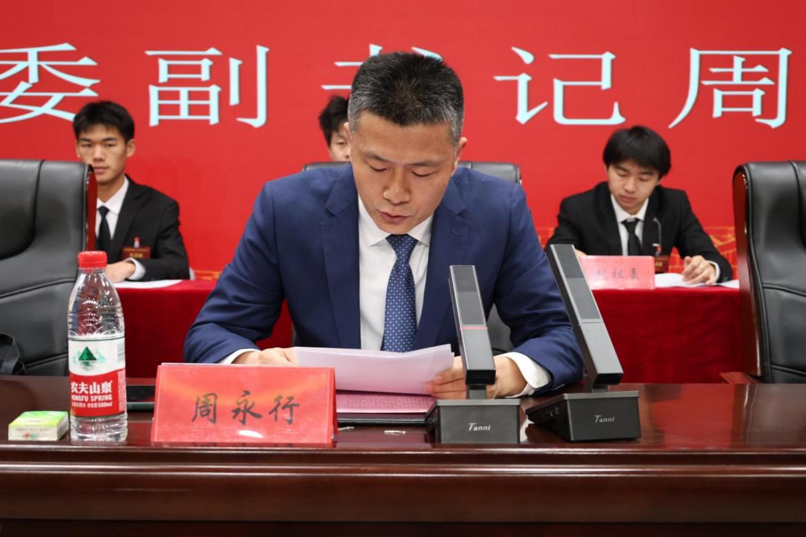 周永行在致辞中对我校团务工作给予高度评价,认为学校团学组织始终紧扣时代主题,精准对接学生需求,在引领青年、服务青年、组织青年方面成效显著。结合职业院校高质量发展大局,他对学校各级团学组织和广大青年学生提出四点希望:一是坚定理想信念,把牢青春航向;二是锤炼过硬本领,积蓄青春能量;三是勇担时代责任,彰显青春作为;四是发挥组织效能,凝聚青春力量。